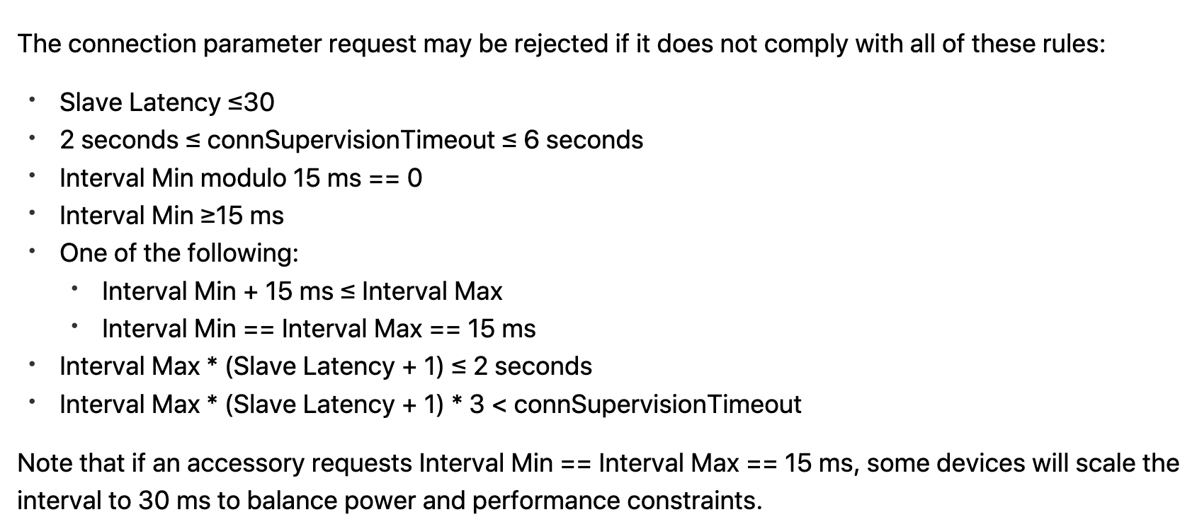 For iOS specifically, a few readers12 pointed out this slide deck and video from 2017 WWDC. The presentation provides an excellent overview of how to get the most out of iOS Core Bluetooth.