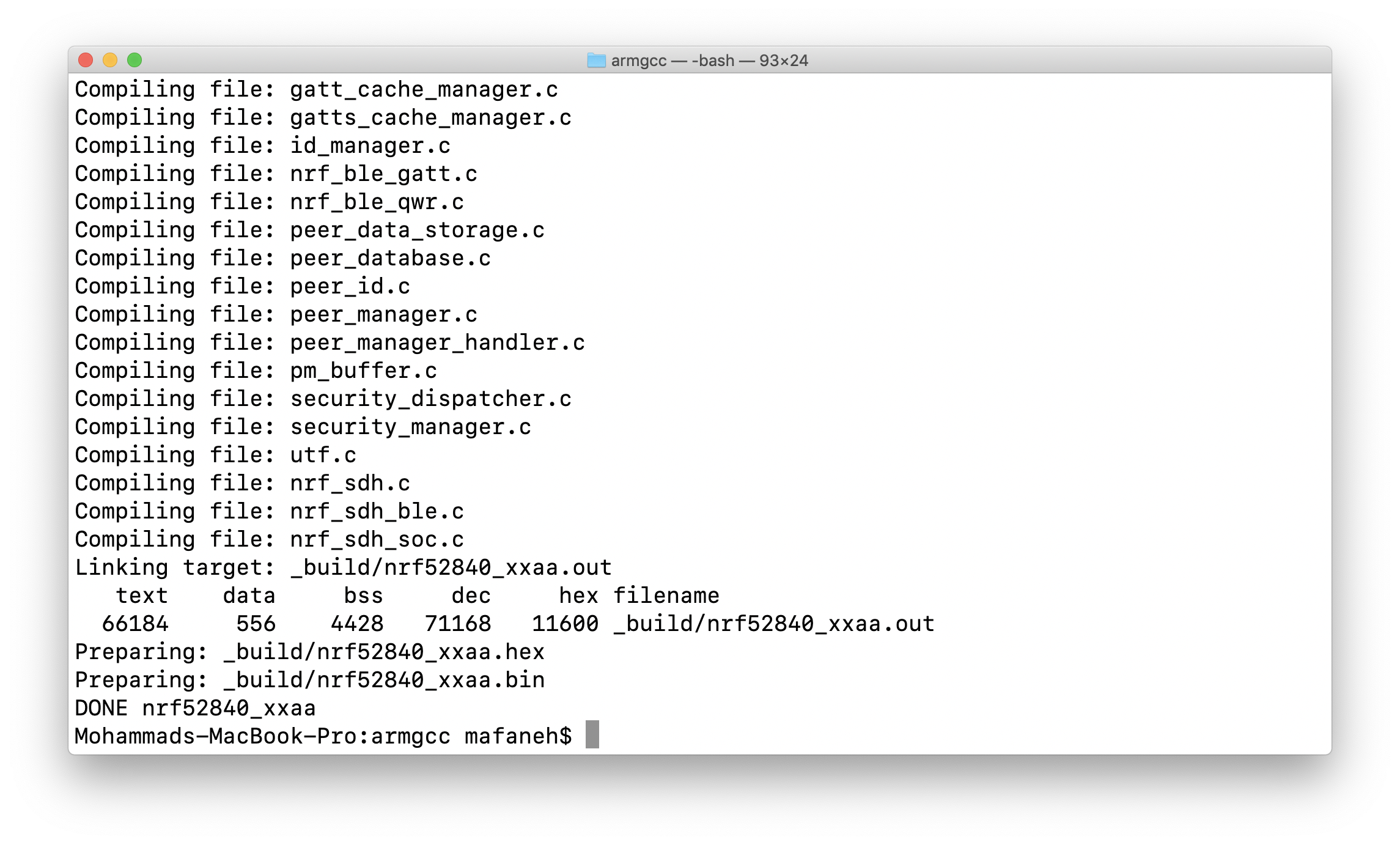In the same folder where Makefile is located (ble_peripheral/ble_app_template/pca10056/s140/armgcc/), run the following command.