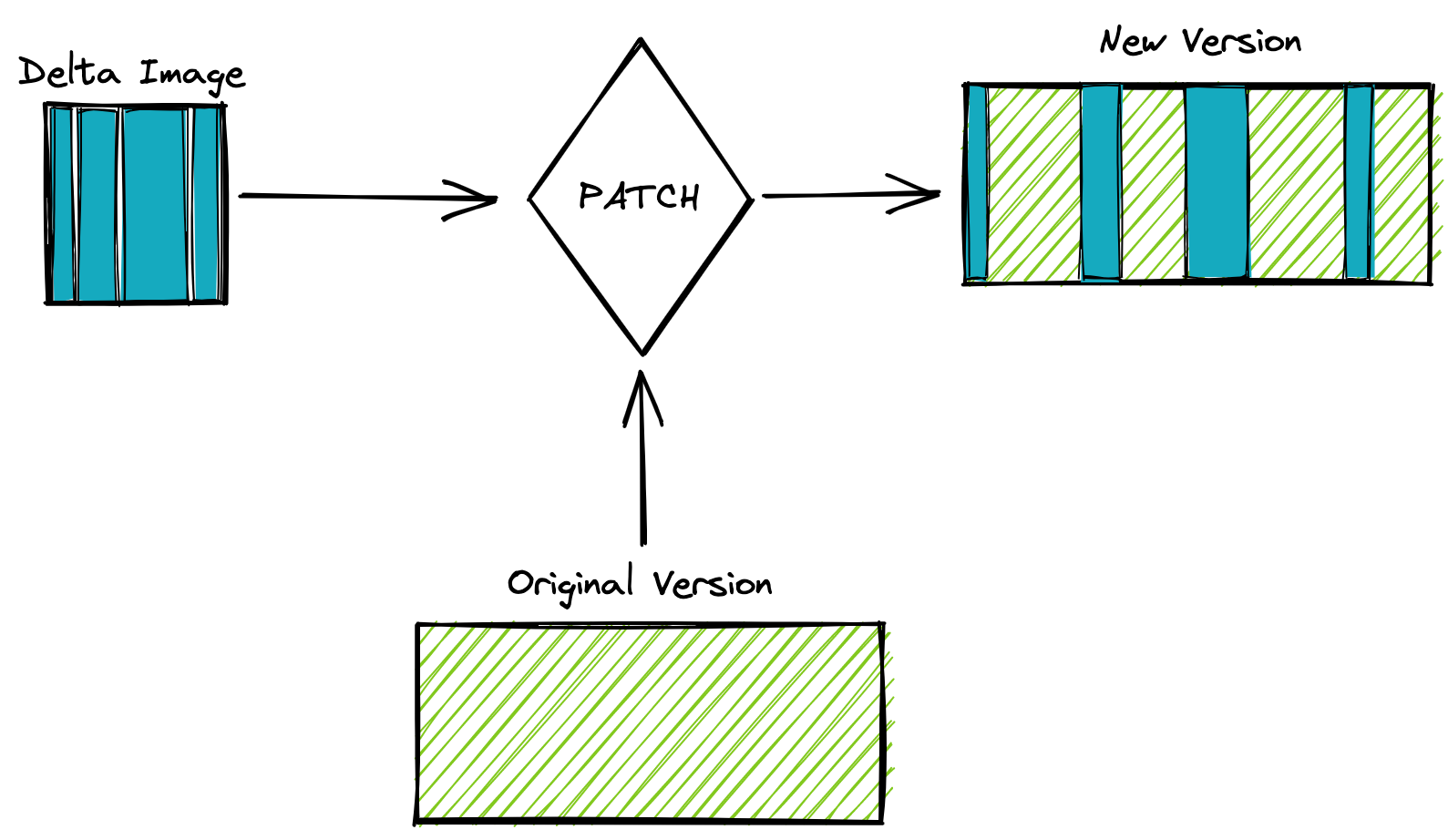 Then we reconstruct our image from our original firmware and our delta image, which we’ll call PATCH.